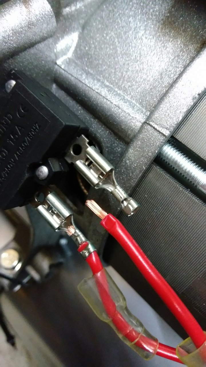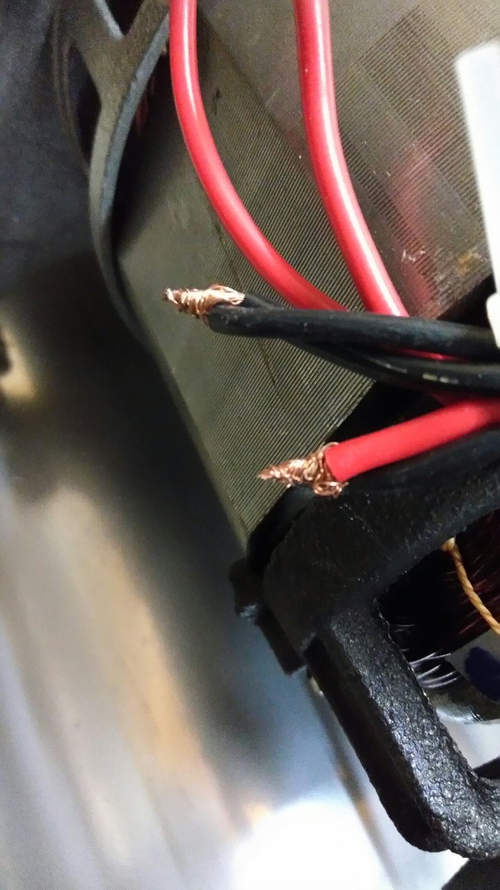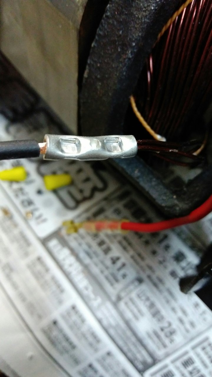 しかも傷付いたモーター巻線に細過ぎるモーター口出し線。なんと驚異の0.75mm2であった。15A流すのにありえん部品選定と品質管理。何処かに擦って削れた感じだ。まぁ工場出荷時の動作チェックで動いたので何でもありなのだ。動作チェックできちんと動作する事だけが大切。