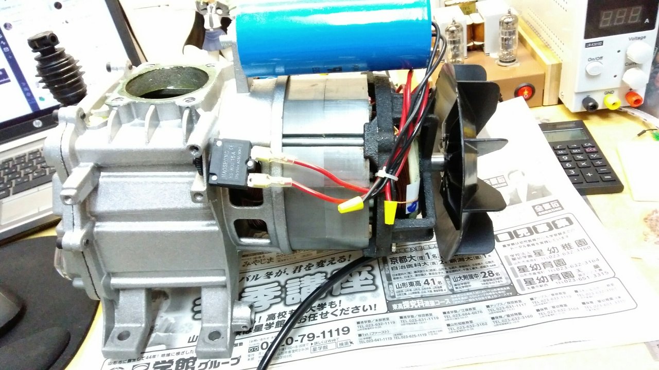 回路図自体は変更していません。ブレーカーとコンデンサの接続点をモーター内部にあったものをモーターの外で接続しました。