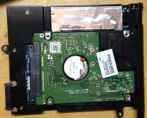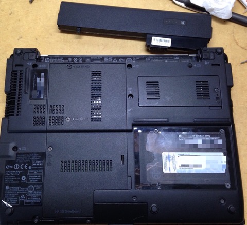 裏返してバッテリを抜いたところです。必ず電源とバッテリーは外さないといけませんね。