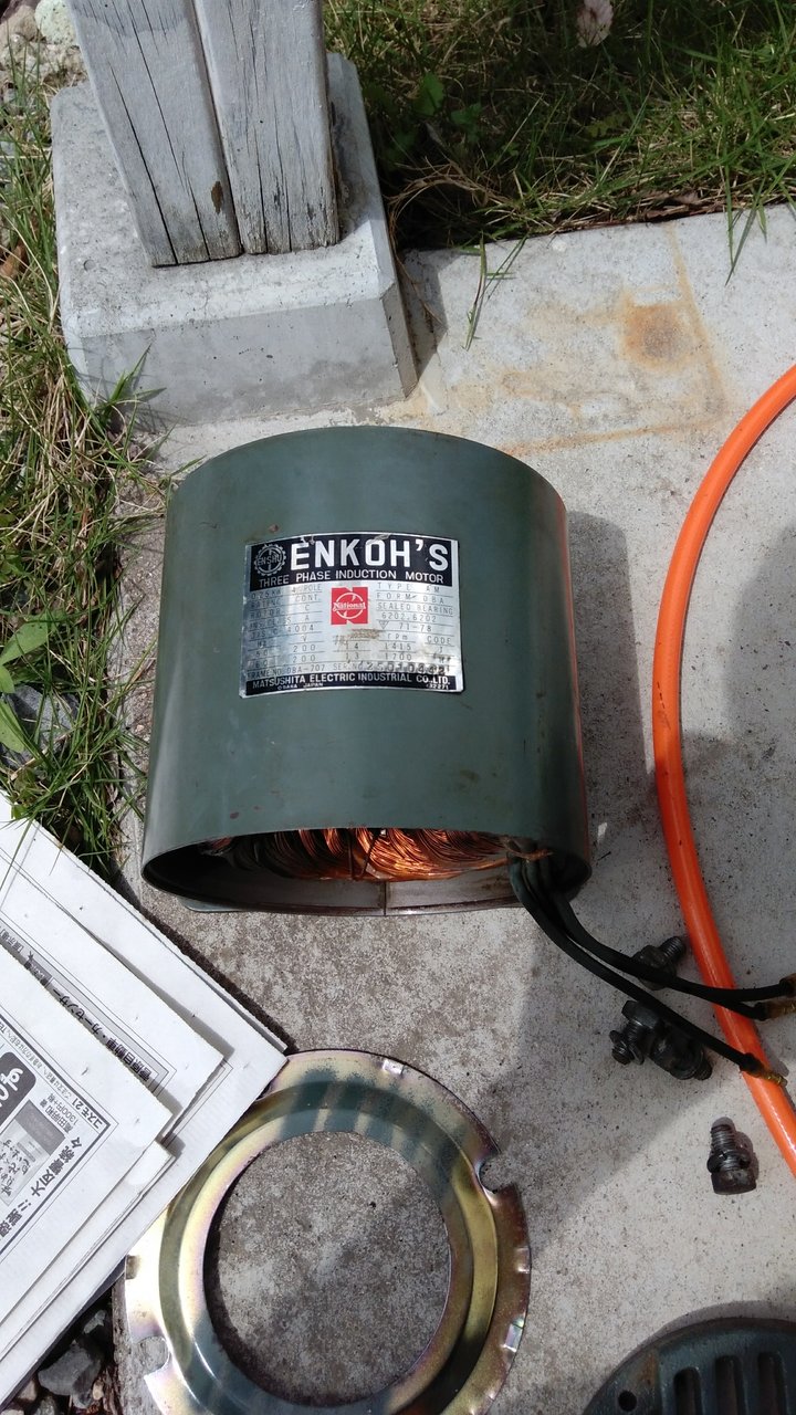 しかもこいつ、三相モーターを搭載しています。どうにかして三相モーターを単相100vで回そうと考えているのですが、それは後述。
