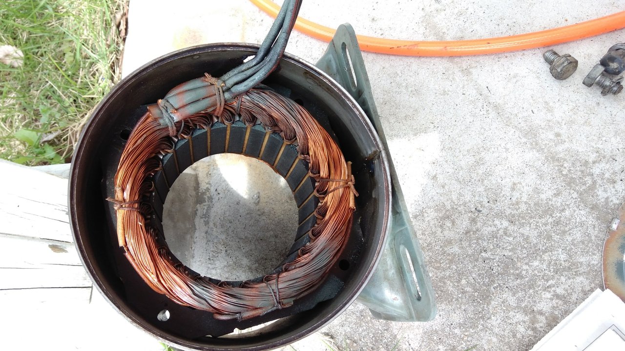 今回はコンデンサを準備するのがめんどくさかったのでモーターシャフトに紐を巻き付けて勢い良く引っ張ることで起動に必要な回転を得ます。試運転なのでこれで十分。