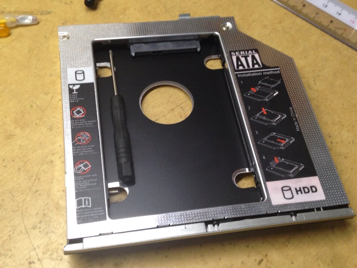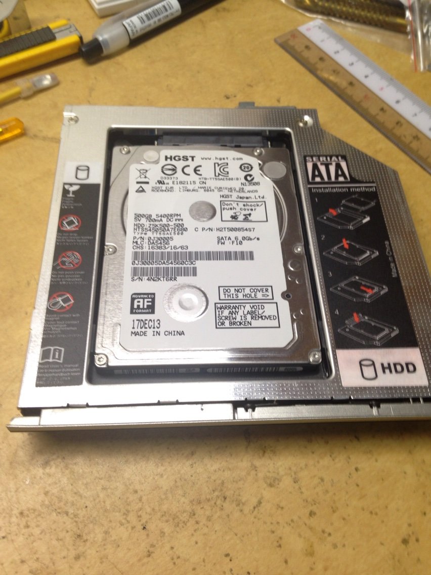 ちょうどよくDVDドライブが付いてなかったのでそこに2.5インチHDDを増設します。