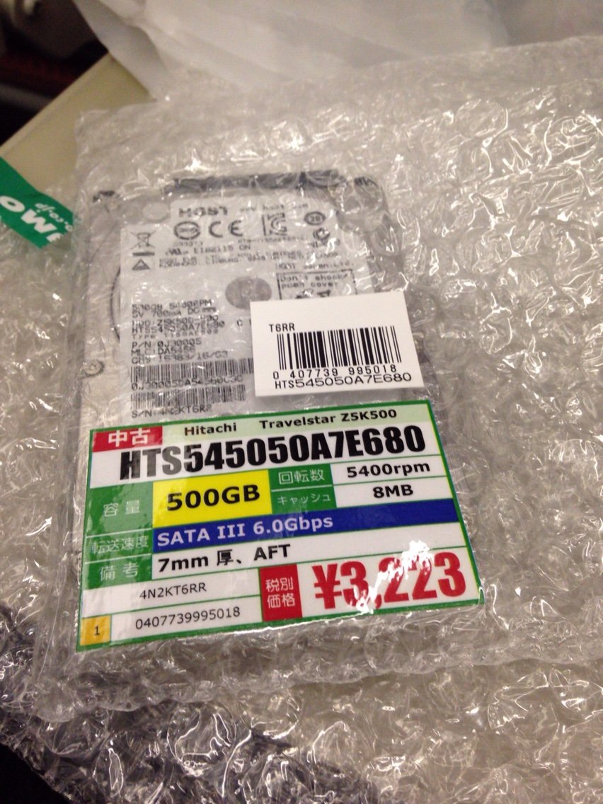 アキバのツクモから中古HDD買って来ました。なんか9のつく日?とかで安かったですね。9%オフだっけかな。たまたま9のつく日だっただけです。