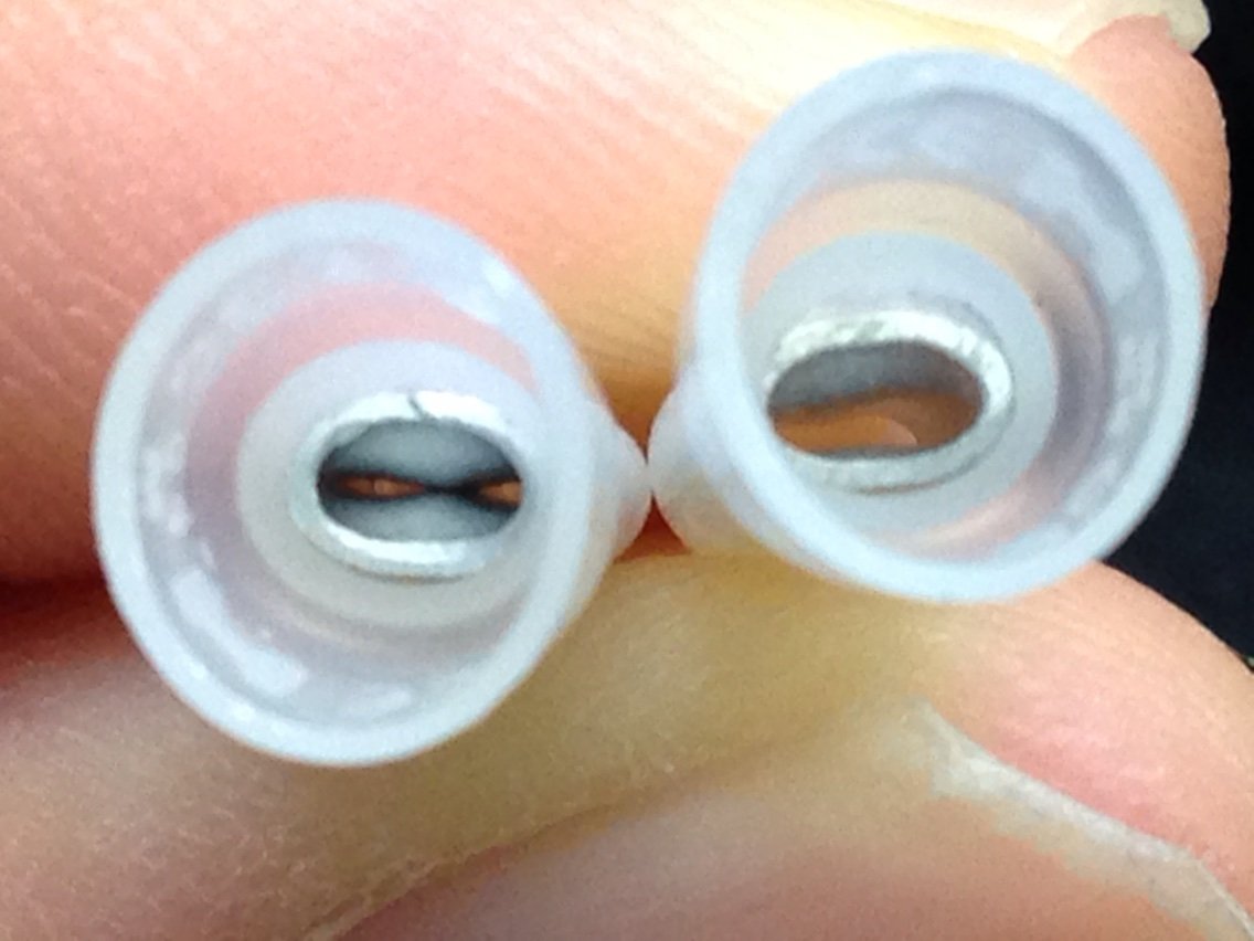 圧着した結果は左がニチフ純正、右が中華