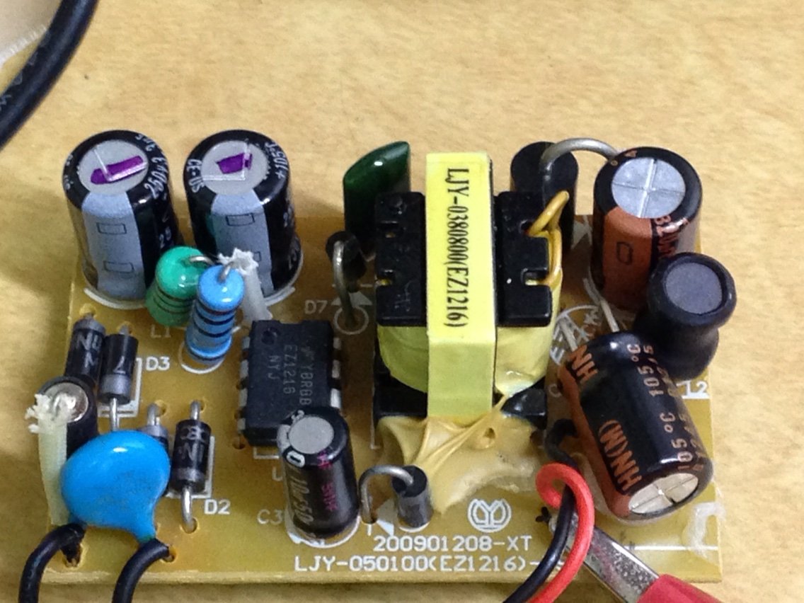 100均の電球型蛍光灯を2年くらい点けてた(1日7時間くらい?)ものが点かなくなったというのでバラしてみた