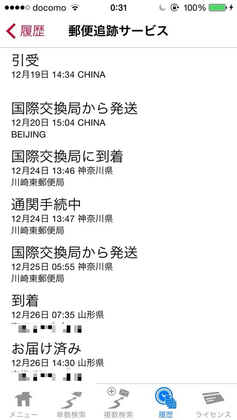 それから毎日、日本郵便と中国郵政の追跡サイトをガン見する。